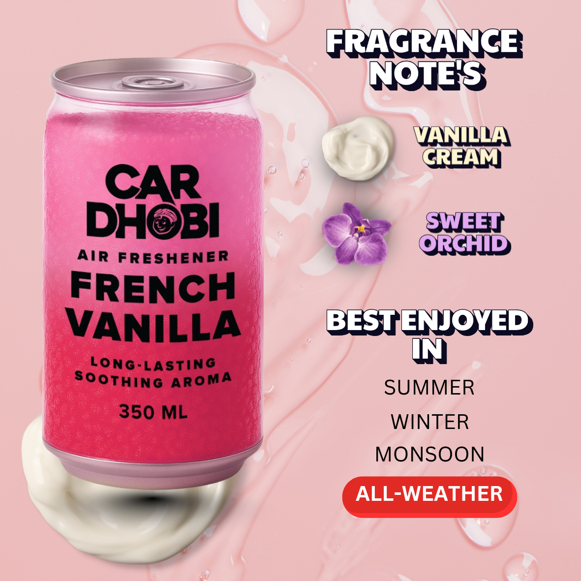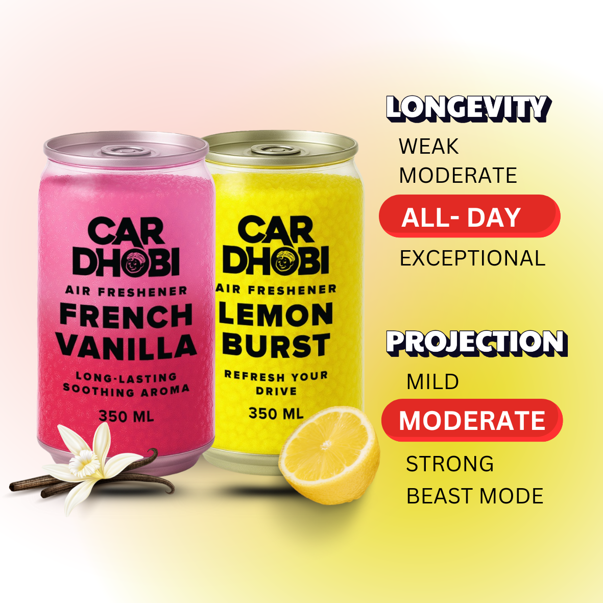 Car Dhobi Air Freshener (350ml) โ French Vanilla, Lemon Burst & Combo Pack of 2